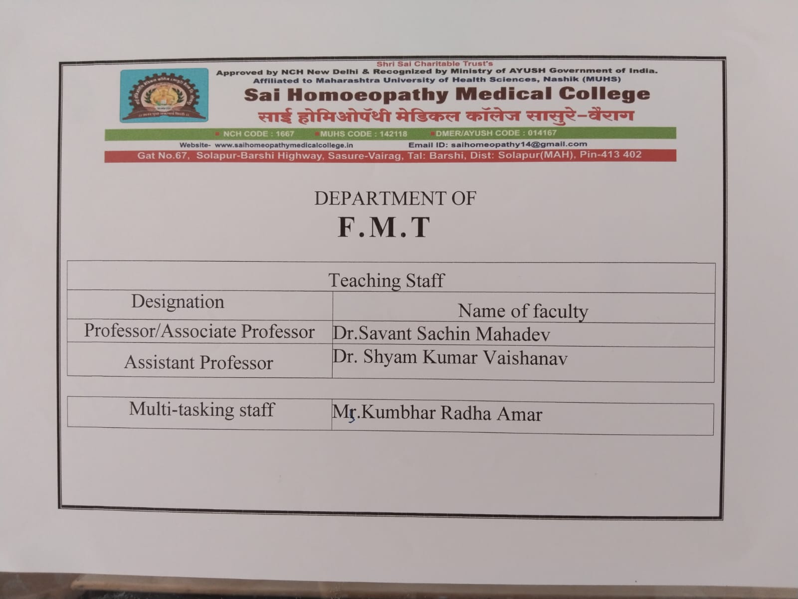 Sai Homoeopathy Medical College,Vairag