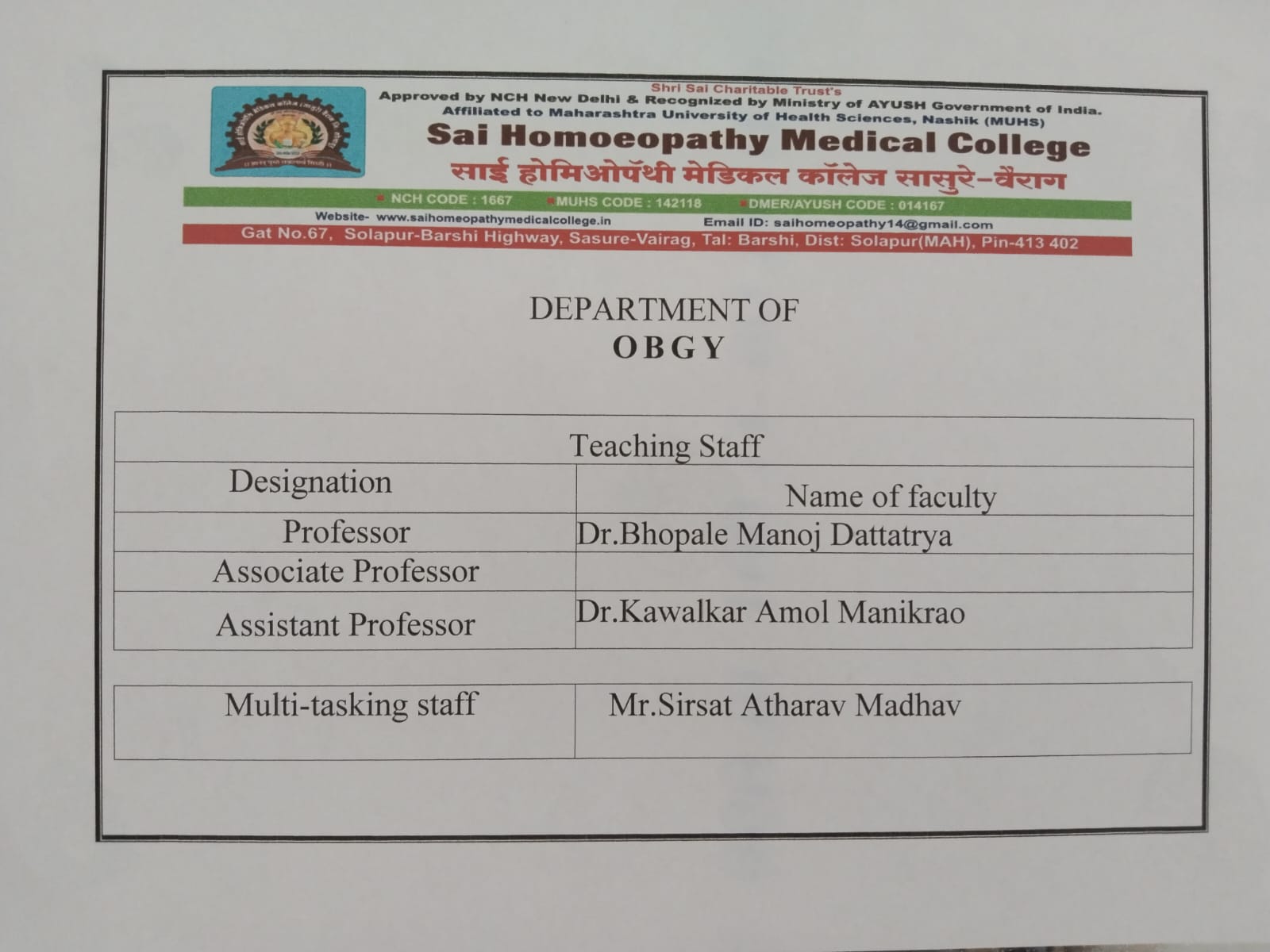 Sai Homoeopathy Medical College,Vairag
