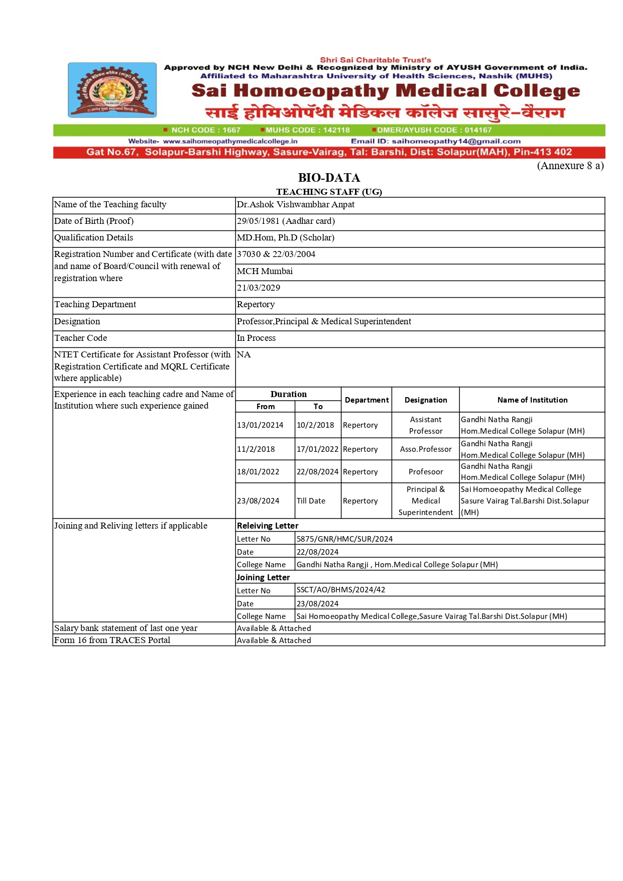 Welcome to Sai Homeopathy Medical College, Sasure, Vairag! It is my honor and privilege to extend a heartfelt welcome to all students, faculty, and visitors to our institution. At Sai Homeopathy, we are dedicated to nurturing the future of homeopathic medicine through a commitment to academic excellence, practical training, and holistic healthcare. Our college strives to create a stimulating environment where students not only gain profound knowledge in homeopathy but also develop the skills and compassion necessary to serve humanity. With a strong academic framework, state-of-the-art facilities, and a team of dedicated faculty members, we ensure that our students are equipped with the best resources to excel in their careers. We believe in the power of education to transform lives, and our mission is to mold homeopathic practitioners who are not only skilled professionals but also empathetic individuals, committed to improving the health and well-being of society. I encourage our students to approach their education with curiosity, discipline, and a sense of purpose. Together, we will work towards advancing homeopathy and making a meaningful impact on the world. Thank you for choosing Sai Homeopathy Medical College. I wish each of you success in your academic journey and look forward to seeing you grow and thrive in your profession.